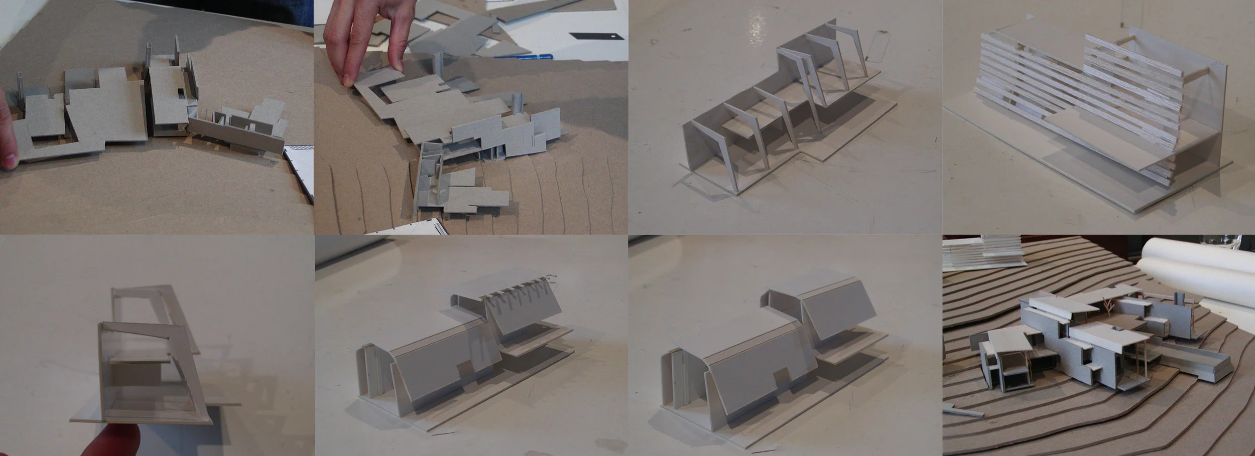 Balsa and cardboard models are sometimes made for the bespoke house projects, at various stages, depending again on scale, to explore ideas of form and structure.